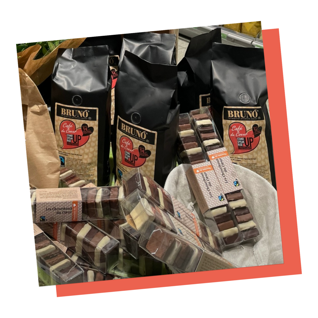 Cactus a ainsi choisi de sélectionner deux produits solidaires en soutien à l’association : un café et un chocolat. Une partie des bénéfices générés par leur vente est reversée à Stand Speak Rise Up!. De son côté, Hermès Luxembourg a créé un carré de soie en édition limitée, dont une part des bénéfices a également été reversée à l’association.